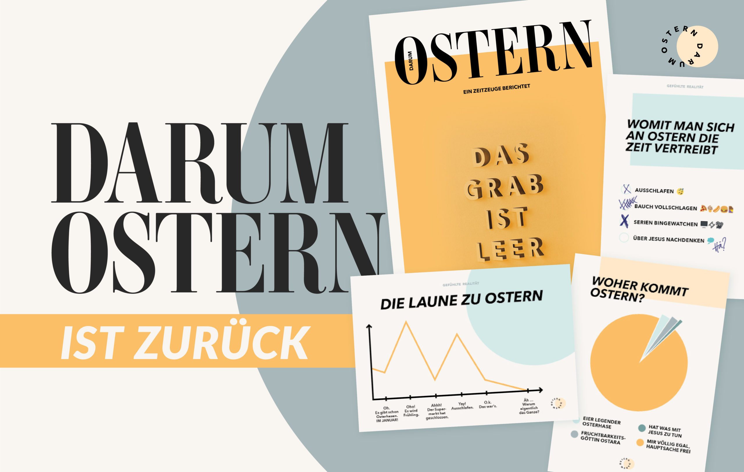 Warum Ostern? Darum Ostern! Mit am Start ist auch wieder das „Darum Ostern“-Magazin. Darin findest du die ganze Ostergeschichte, erzählt vom Evangelisten Markus, und noch viele Infos mehr.